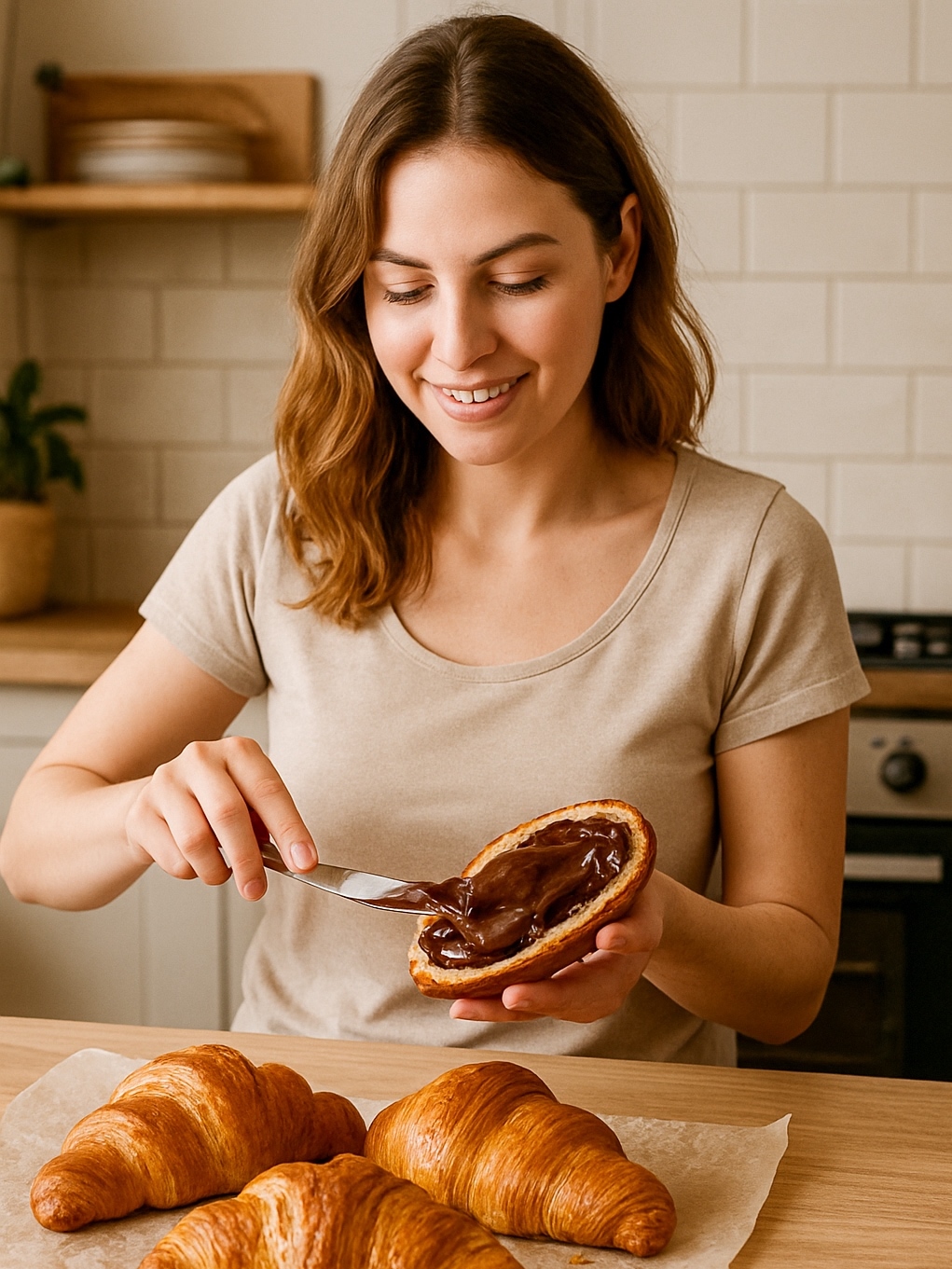 Для круассанов: Разрежьте готовое охлажденное тесто для круассанов на треугольники. На широкий край положите чайную ложку пасты СВИТТИ и аккуратно сверните рулетиком. Выпекайте как обычно. Начинка не вытечет, а останется нежной и тающей! Это в 10 раз вкуснее обычного шоколада!